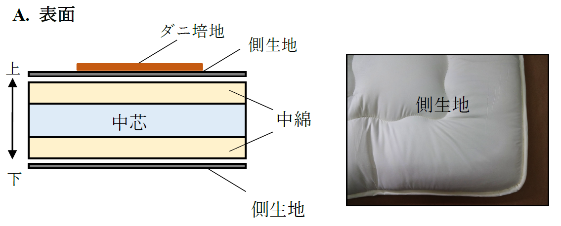 ※1布団の表面(A:側生地の上)は生きたダニを1,000匹播種