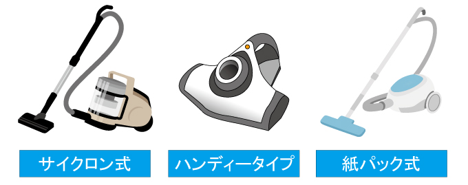 検証した掃除機は、「サイクロン式」「ハンディータイプ」「紙パック式」の3種類です。布団は、一般的な敷布団(シングルサイズ)を使用しました。