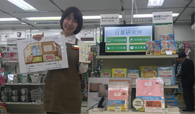 東急ハンズ渋谷店で実演販売士「MOMOさん」ダニ捕りロボ・ダニ捕りマットを販売